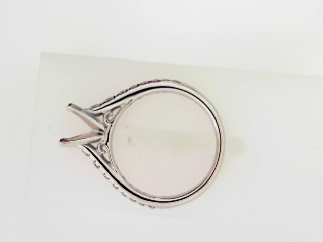This 14K white gold contemporary engagement ring has a classic look with its straight styled band. The band showcases the gorgeous graduating diamonds leading to the main star of the show, the round center stone. (Center Stone Not Included)