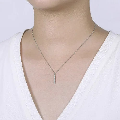 Enjoy the look of this stunning 14K White Gold Diamond Bar Pendant Necklace