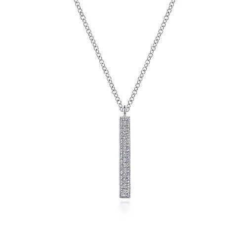 Enjoy the look of this stunning 14K White Gold Diamond Bar Pendant Necklace