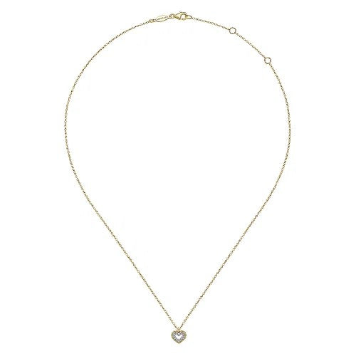 14K Yellow Gold Bujukan Diamond Pave Heart Pendant Necklace