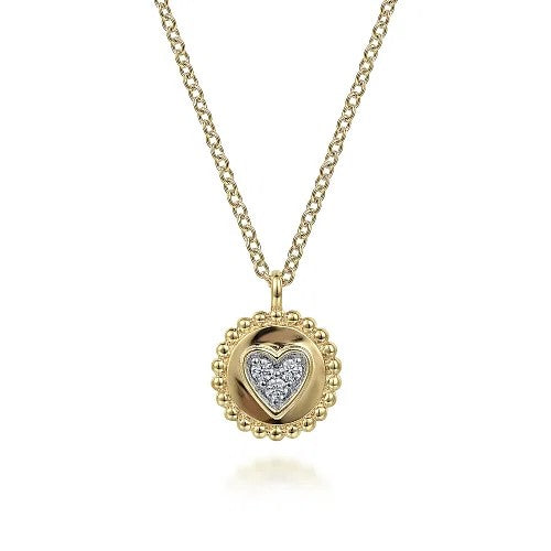 14K Yellow Gold Bujukan Heart Pendant Necklace with Diamonds