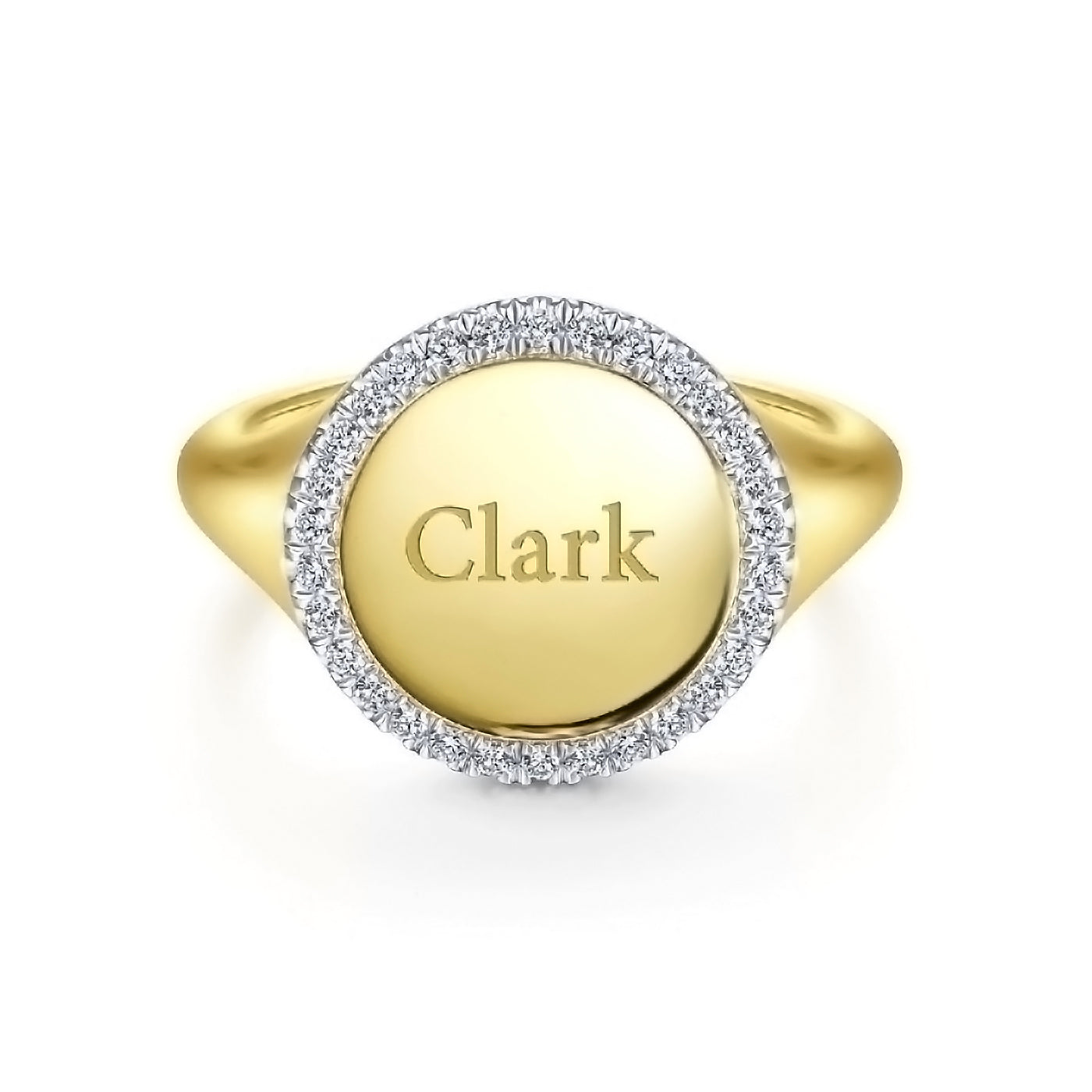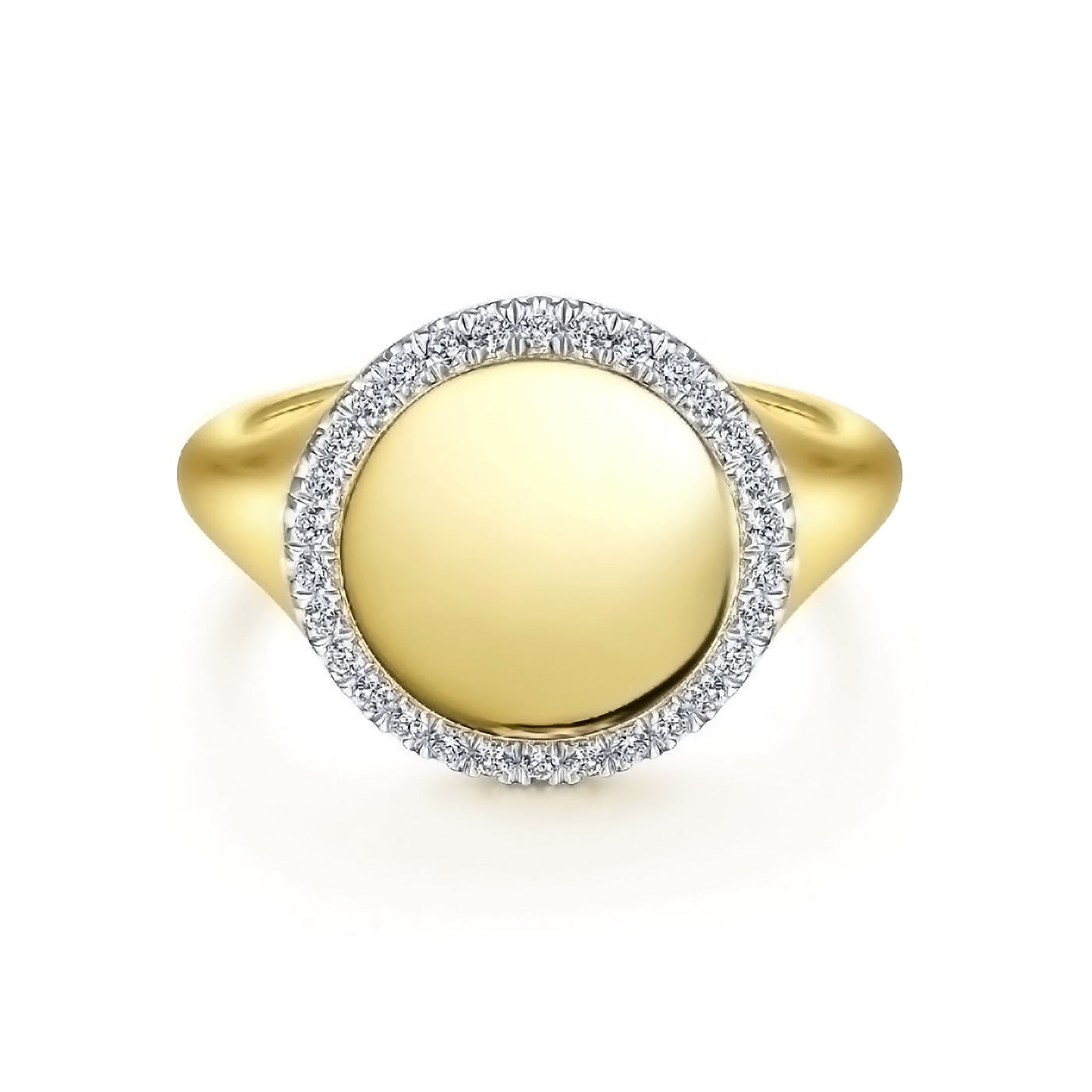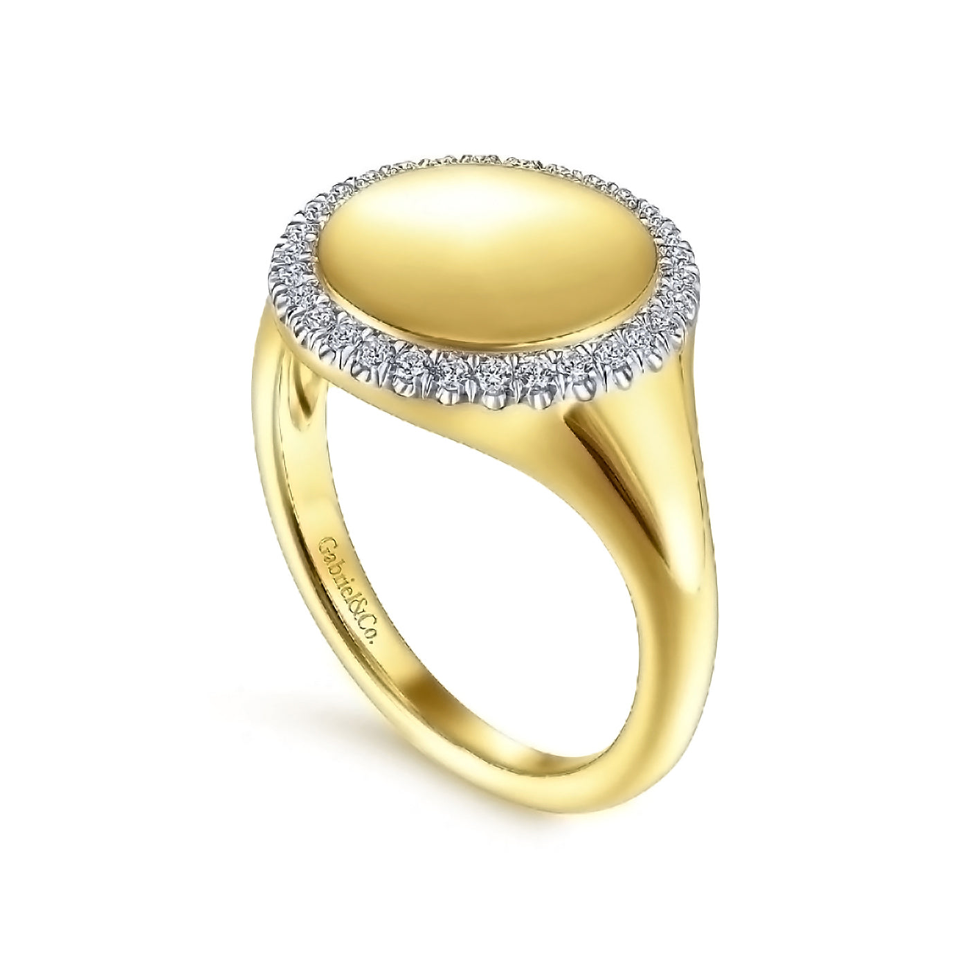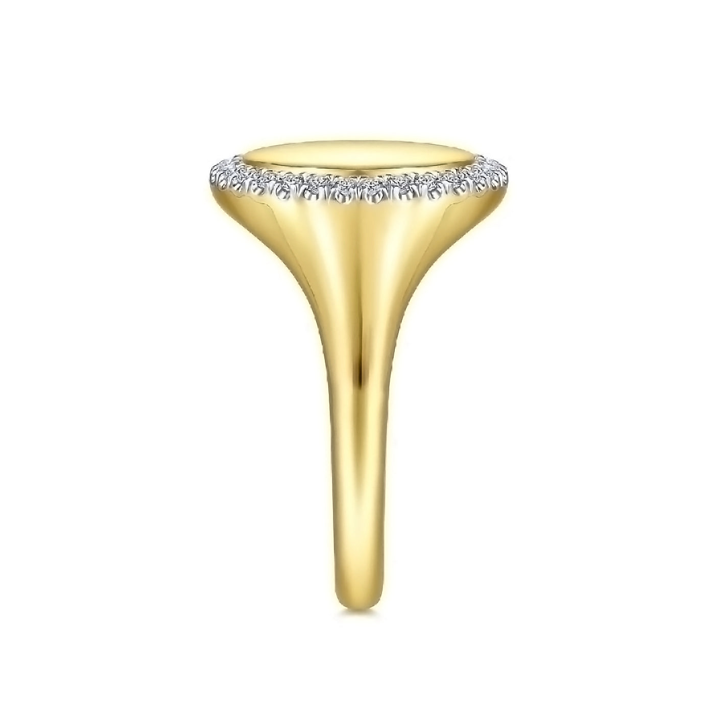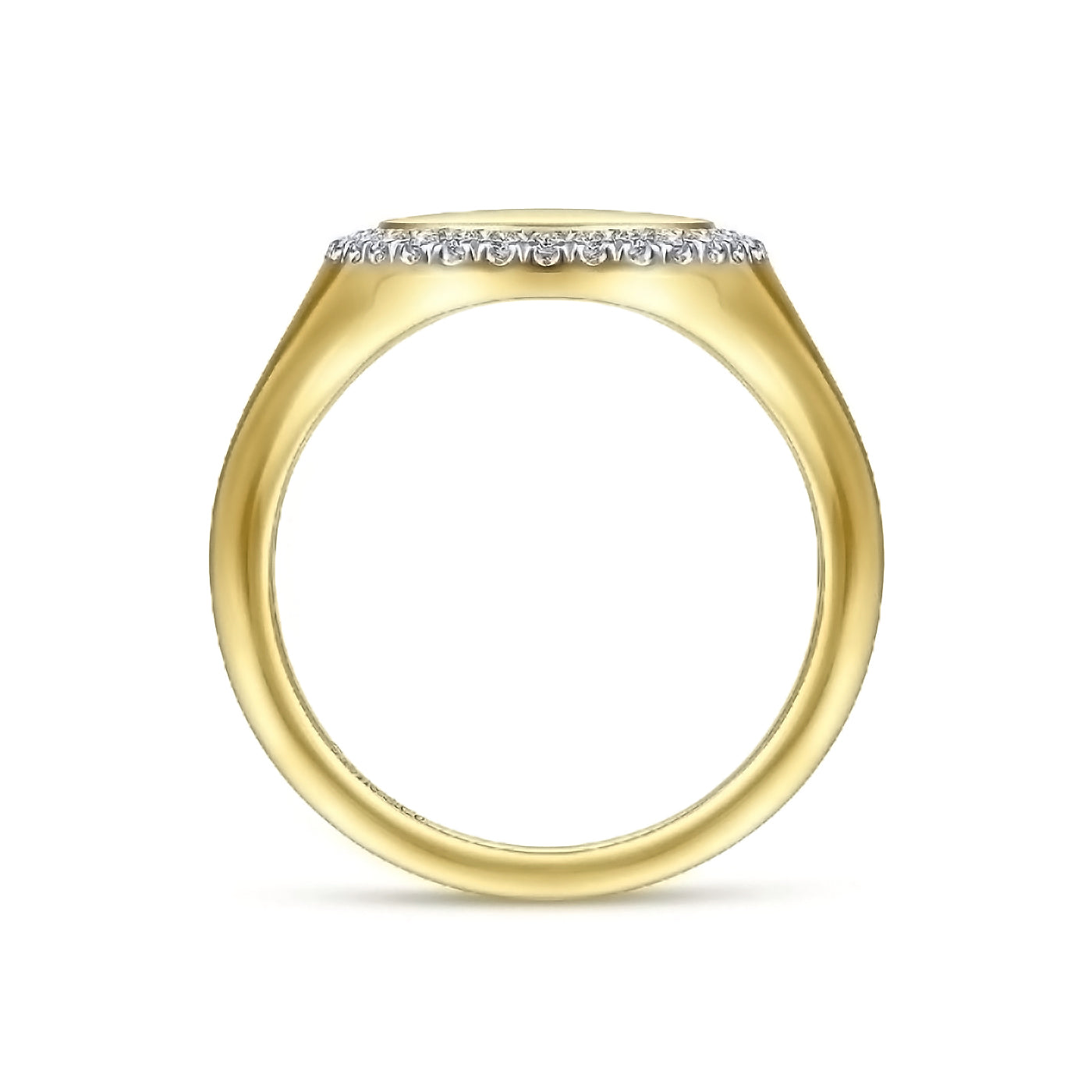 14K Yellow Gold Pinky Signet Ring with Diamond Halo
