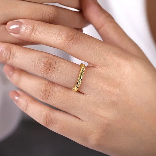 Enjoy the look of this stunning 14K Yellow Gold Tilted Leaf Ring