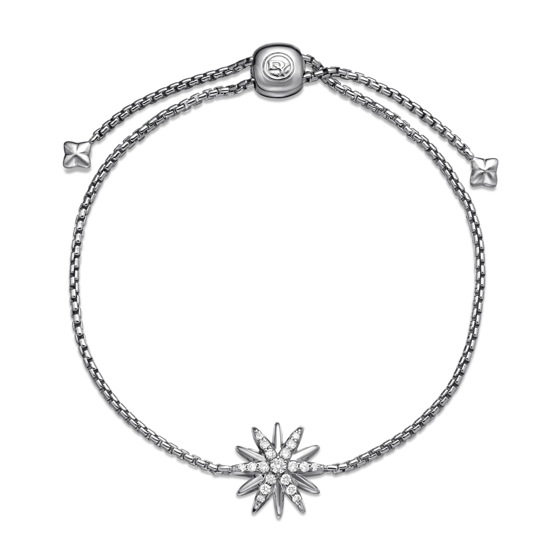 Starburst Station Chain Bracelet in Sterling Silver with Diamonds, 1.5mm