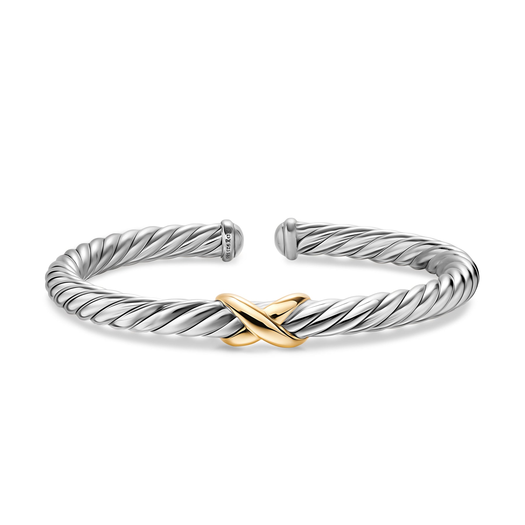 Cable Flex® X Bracelet in Sterling Silver with 14K Yellow Gold, 6mm