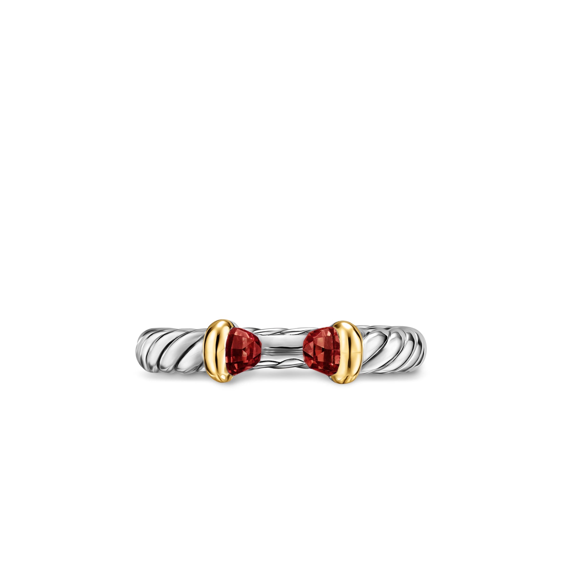 Petite Cable Open Ring in Sterling Silver with 14K Yellow Gold and Rhodolite Garnet, 3.4mm