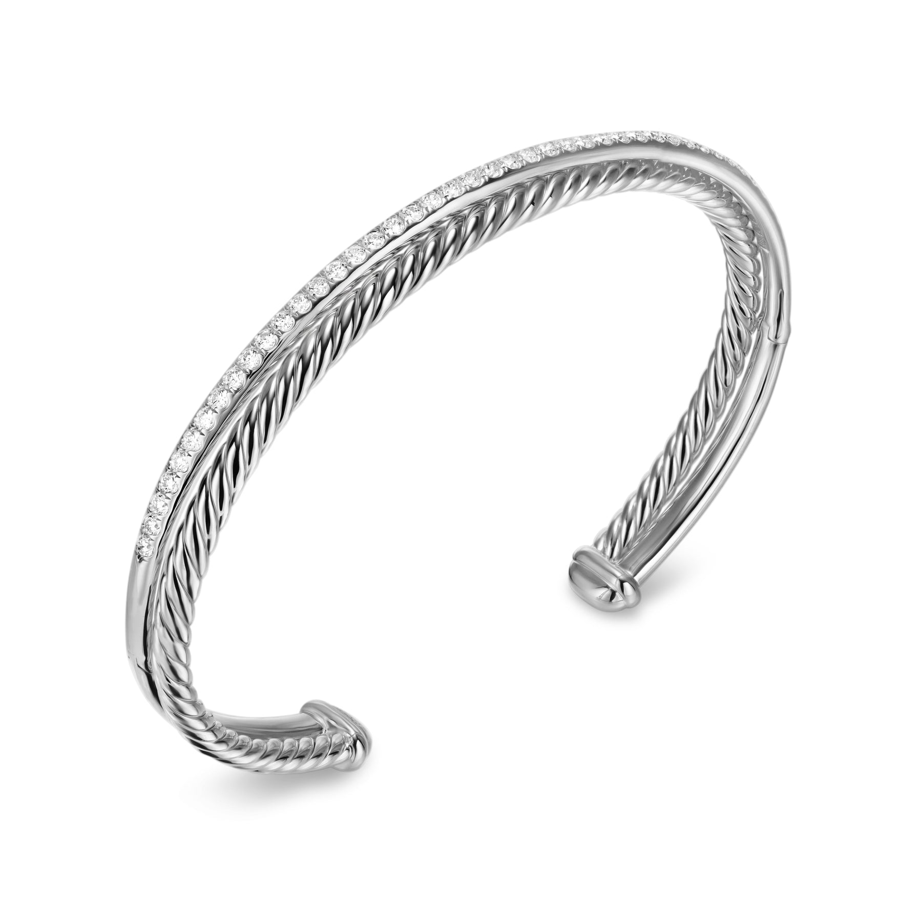 Crossover Two Row Bracelet in Sterling Silver with Diamonds, 6mm