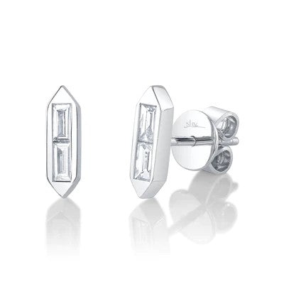 0.18CT 14K W/G DIAMOND BAGUETTE STUD EARRING All Shy Creation diamonds are natural and hand-selected. All stones are unique and hand set. As a result, you can expect slight variations in the shade, hue, tint of the color stones and stone count. White gold is electroplated with rhodium. These finishes may wear off with frequent use.