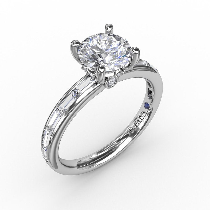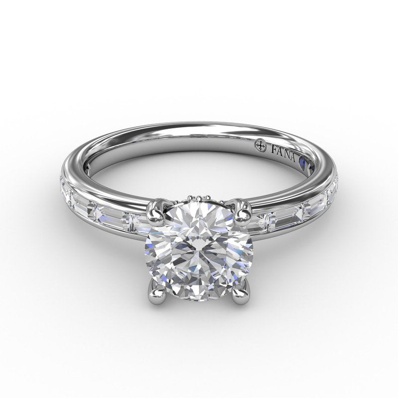 Classic Round Diamond Solitaire Engagement Ring With Baguette Diamond Shank