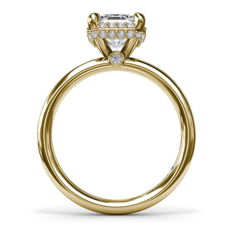 This emerald cut diamond halo engagement ring features a gorgeous array of pavé diamonds sure to sparkle from any angle. (Center Stone Not Included)
