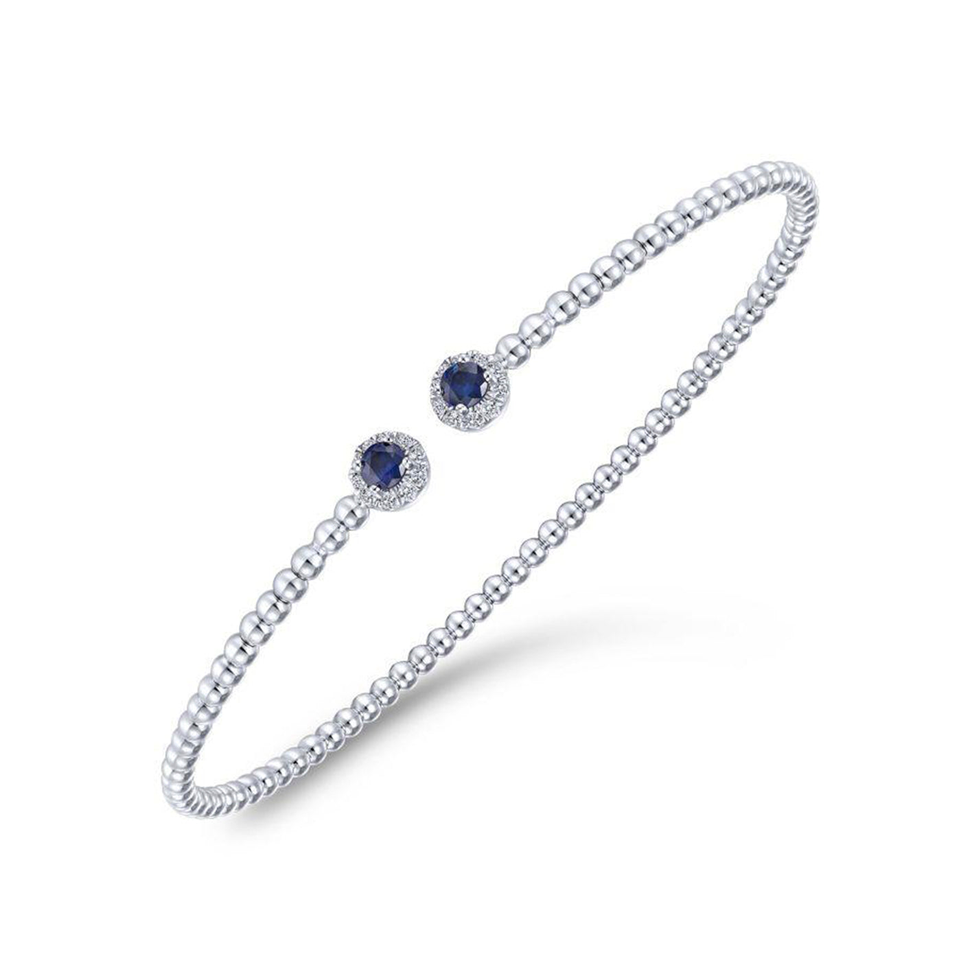 14K White Gold Diamond and Sapphire Fashion Bangle
