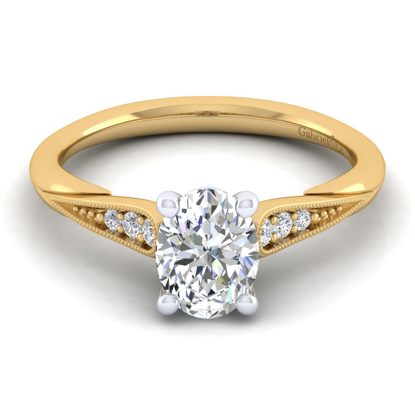 14K White-Yellow Gold Oval Diamond Engagement Ring (Setting Only)