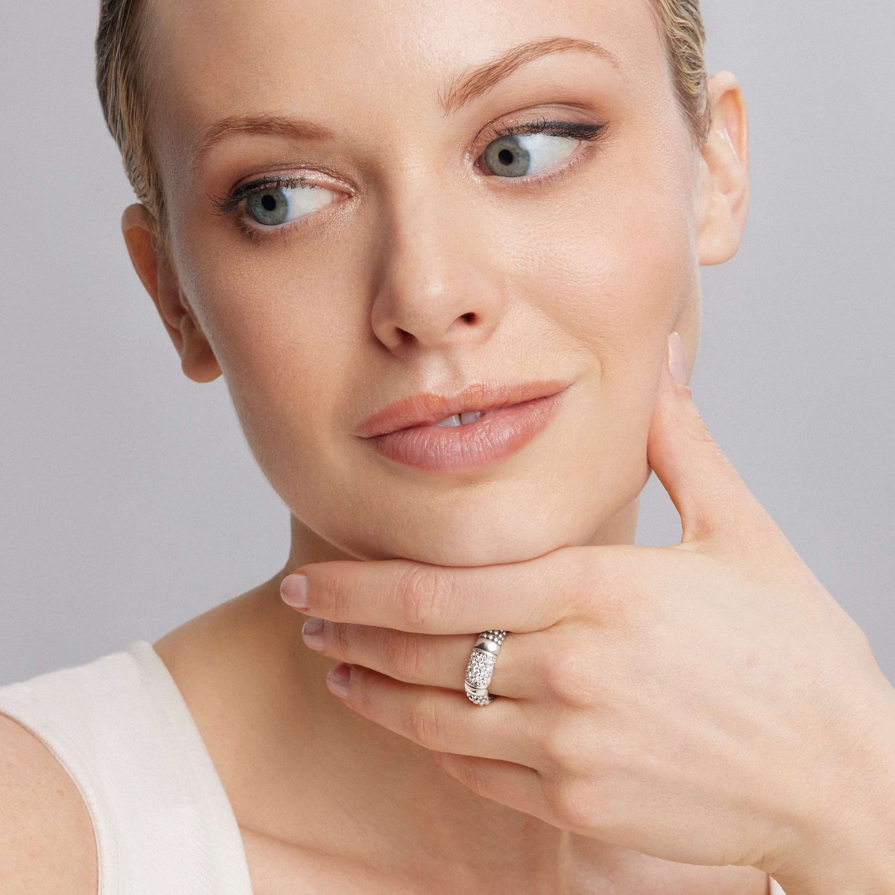 Distinctive and refined, the Sterling Silver Caviar Diamond Ring brings modern elegance to a timeless silhouette. Pavé-set diamonds shimmer against signature Caviar beading, expertly crafted in polished sterling silver. Designed to stand alone or stack effortlessly, this unique 6mm band ring adds texture, brilliance, and everyday sophistication to any jewelry collection. LAGOS diamonds are the highest quality natural stones.