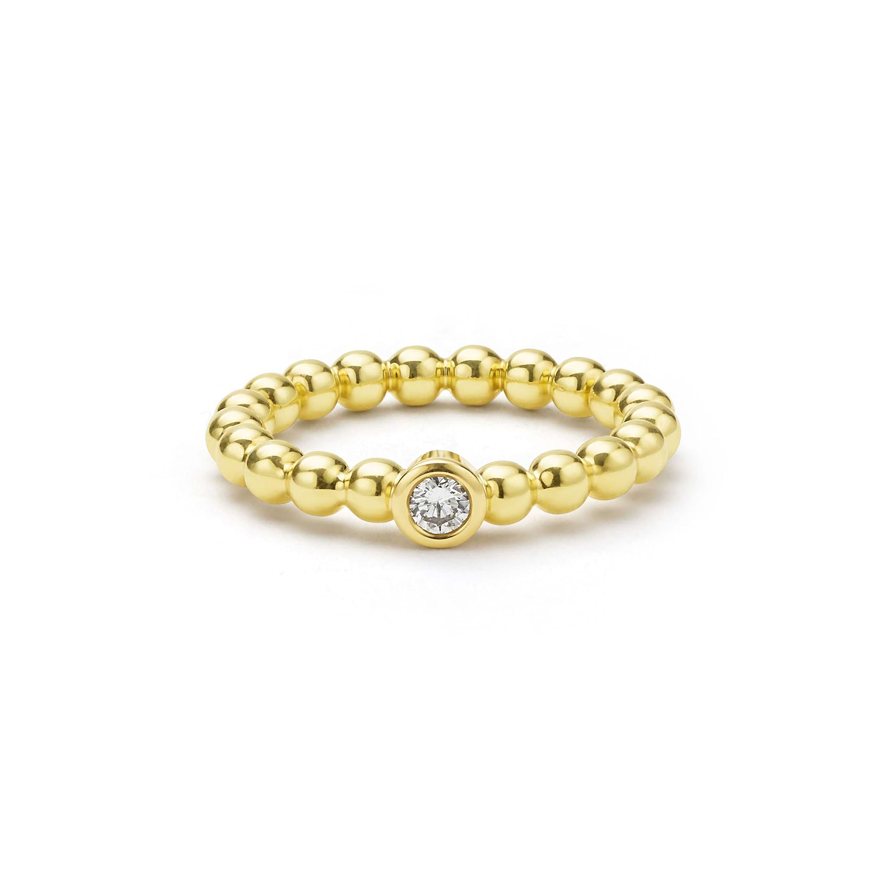 18K gold Caviar beading and a bezel-set diamond form this stacking ring. LAGOS diamonds are the highest quality natural stones.