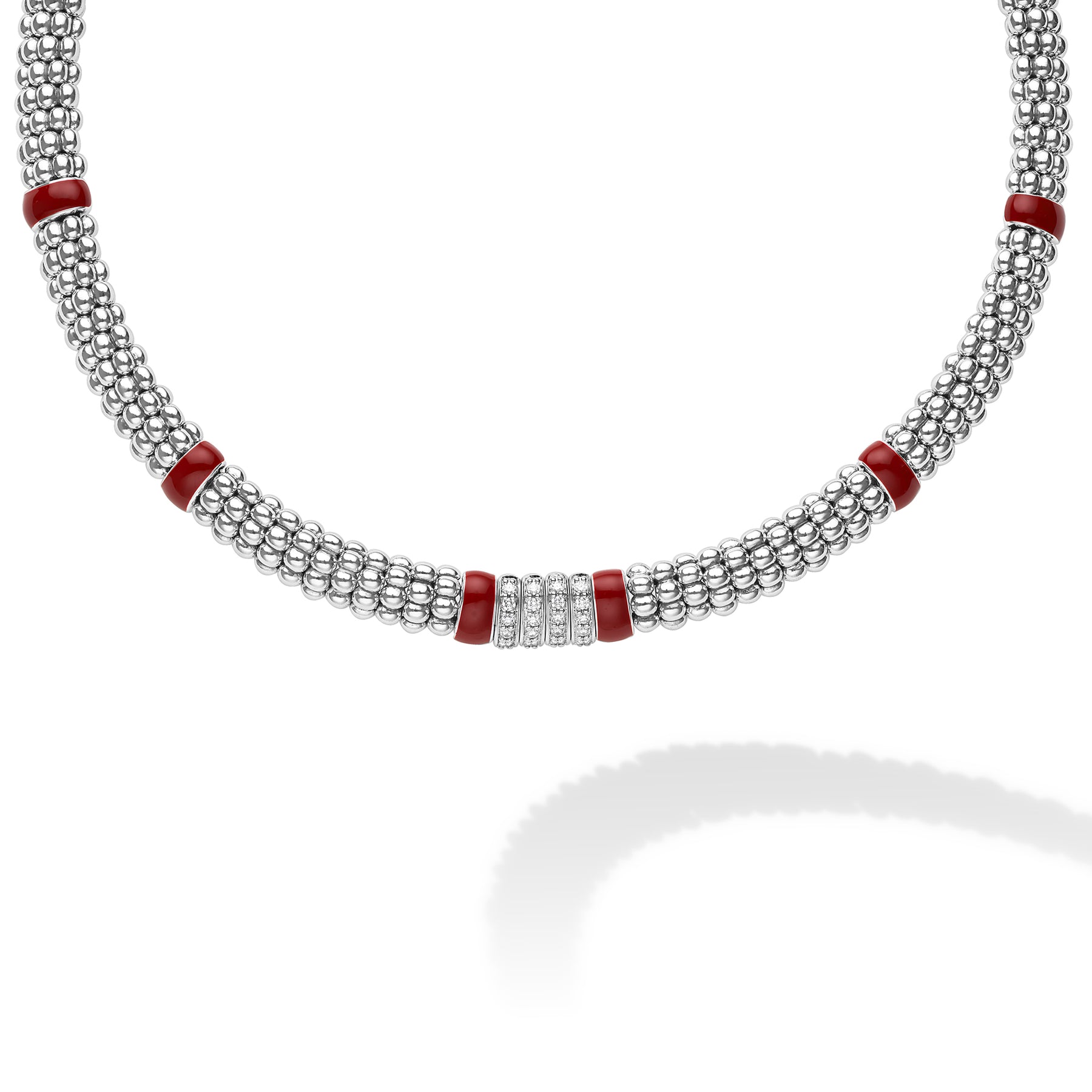 Signature Caviar Red Enamel Four Station Diamond Caviar Necklace