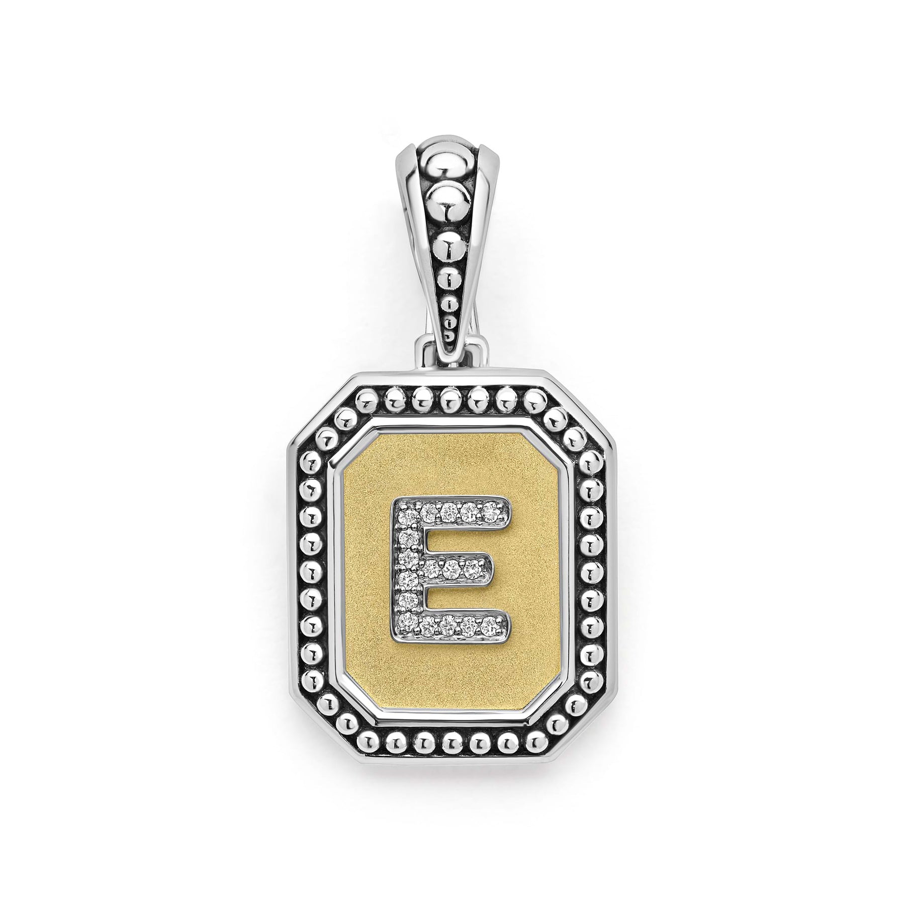 Add a personal touch with the Signature Caviar Octagon Diamond E Initial Charm. Crafted in sterling silver and 18K gold, this distinctive octagon-shaped “E” charm is accented with brilliant natural diamonds for refined sparkle. Chain sold separately. LAGOS diamonds are the highest quality natural stones.