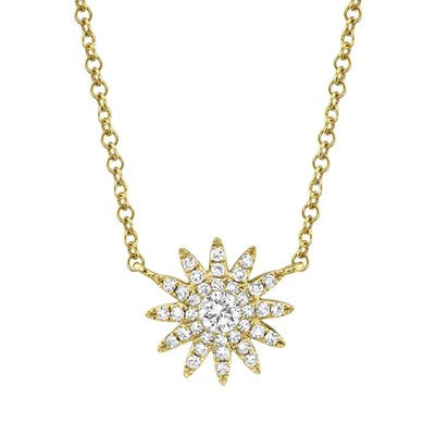0.15CT 14K Y/G DIAMOND STARBURST NECKLACE All Shy Creation diamonds are natural and hand-selected. All stones are unique and hand set. As a result, you can expect slight variations in the shade, hue, tint of the color stones and stone count.