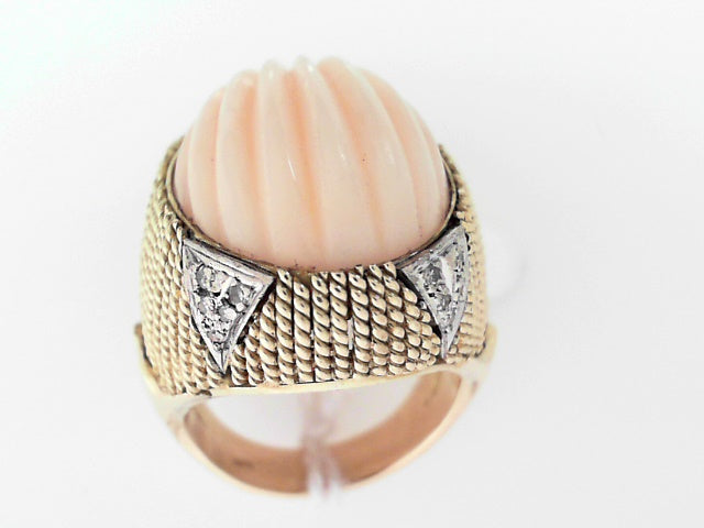 Antique 14K Yellow Gold Coral Ring with Diamonds