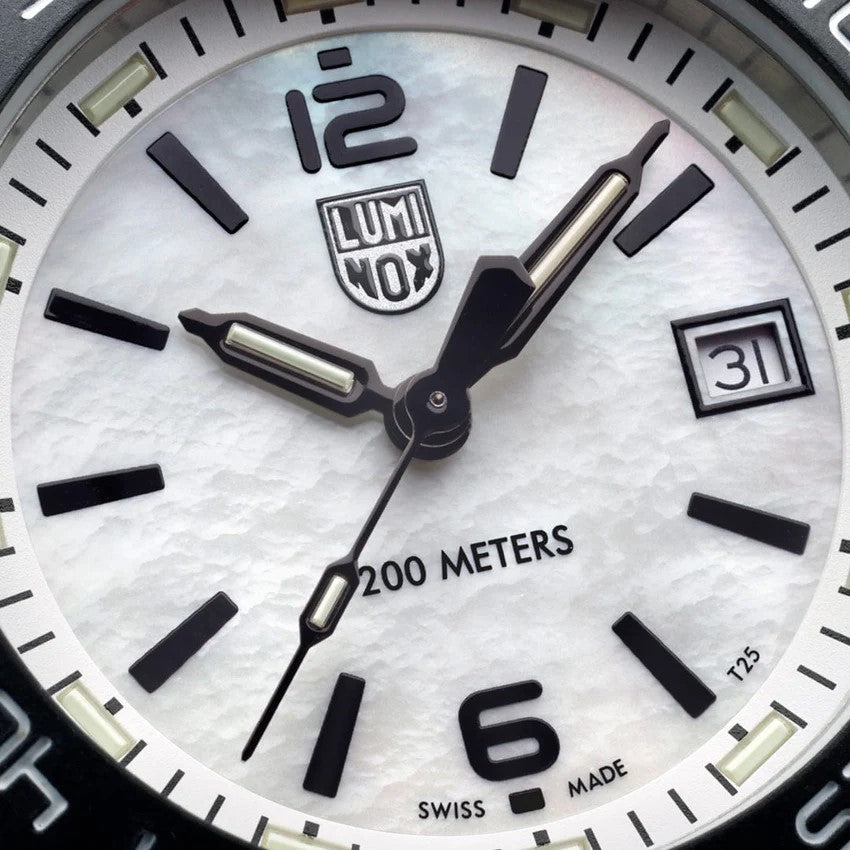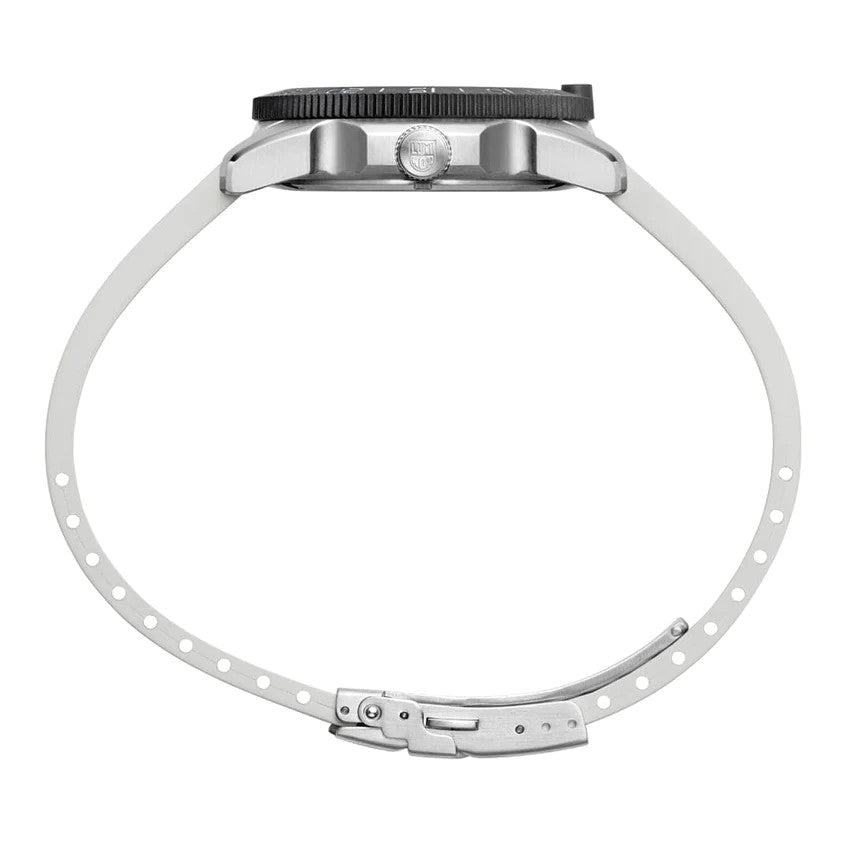 The Pacific Diver Ripple collection takes its design from the popular Pacific Diver, launched in 2020. The Ripple is available in a 39mm case size to appeal to a wider range of casual explorers and aquatic aficianados, while remaining true to the Luminox brand DNA. Combining a stainless steel case, together with a CARBONOX™ bezel, results in an eye-catching fusion of materials. This watch is packaged as a set, with the watch on a rubber strap in Fresh White and an additional Vivid Pink rubber strap. If you are not afraid to show some color, this watch is your best friend, above water, or under water! This set also comes packaged with a strap changing tool. As with any Luminox, it features our cutting-edge Luminox Light Technology, for self-powered illumination for up to 25 years.