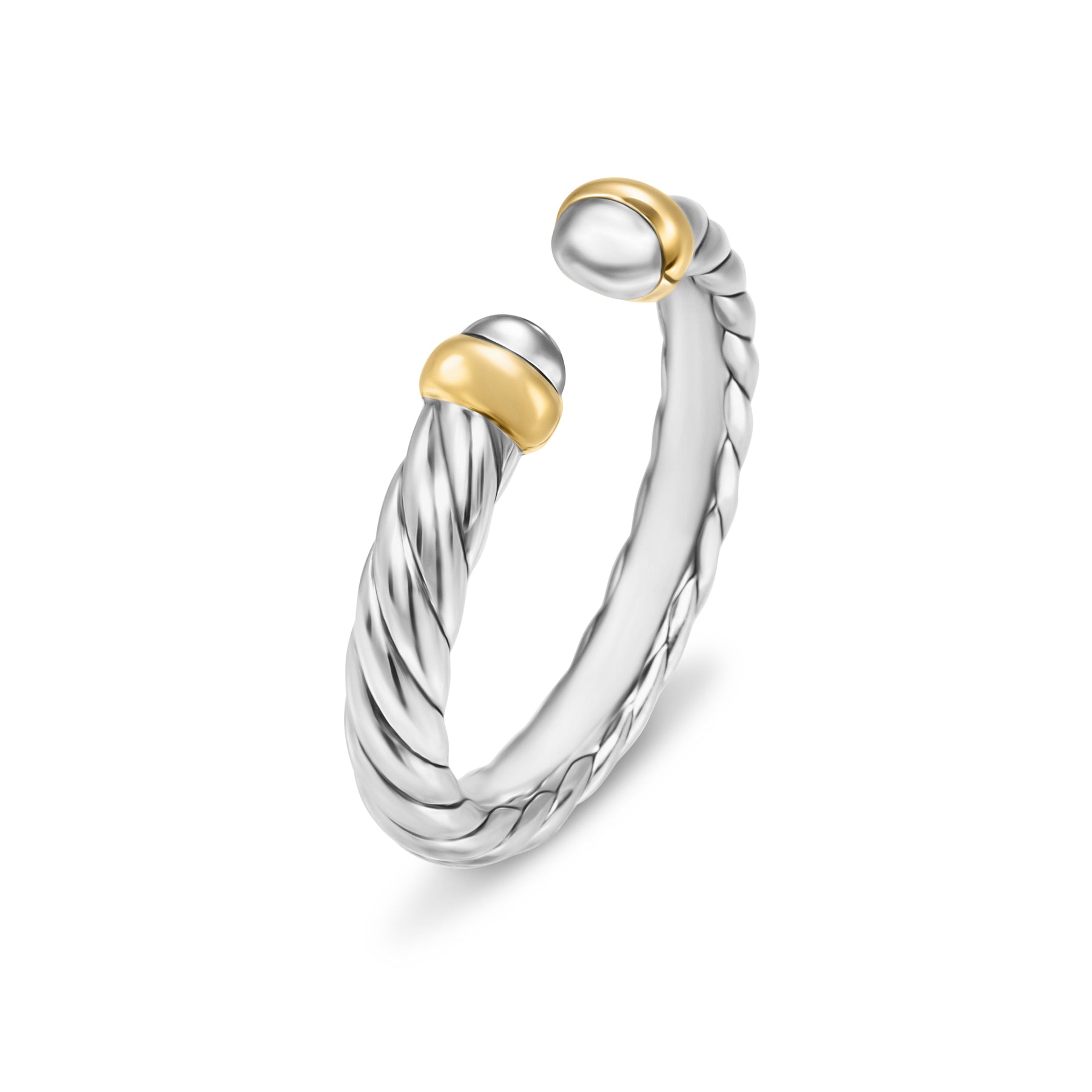 Petite Cable Ring in Sterling Silver with 14K Yellow Gold, 3.4mm