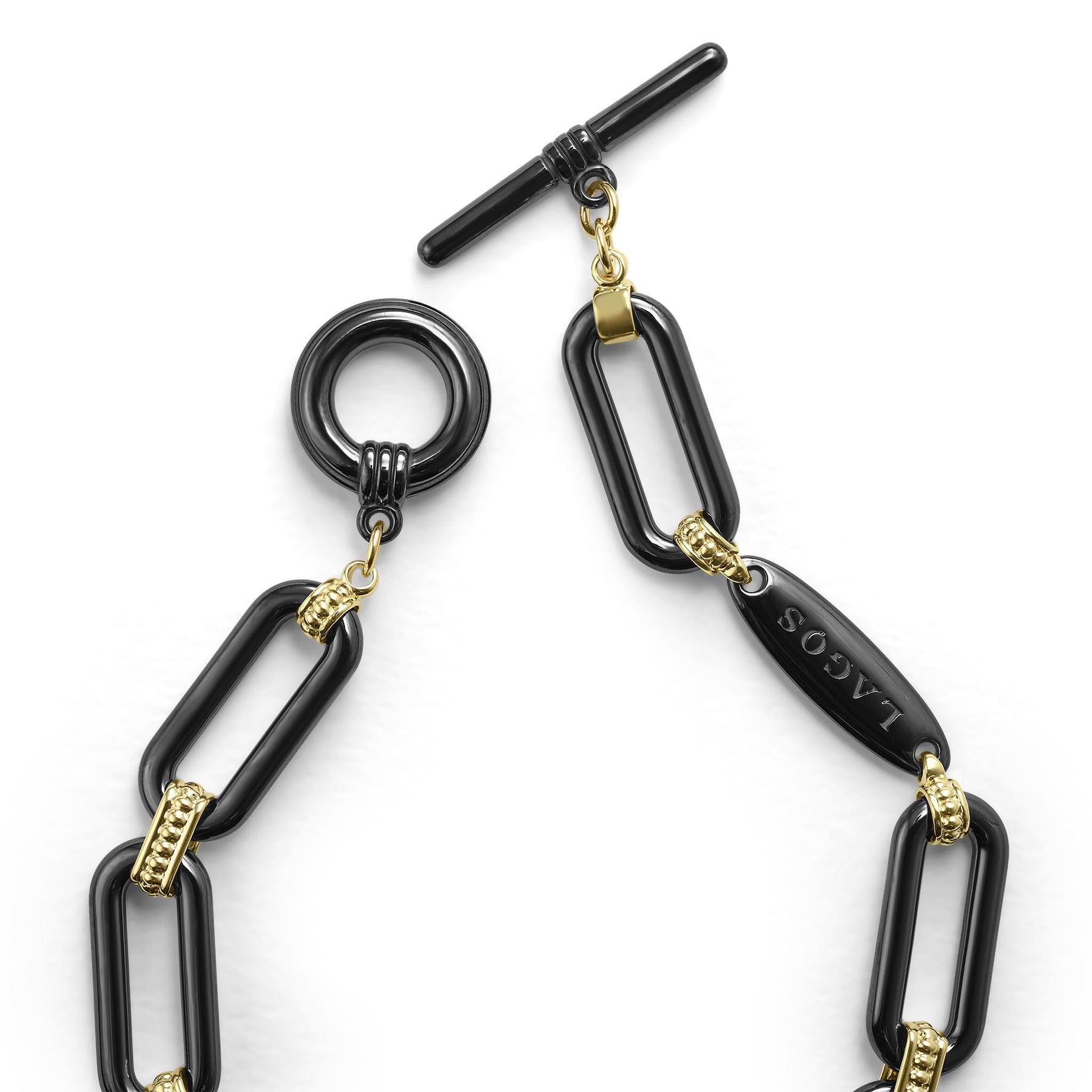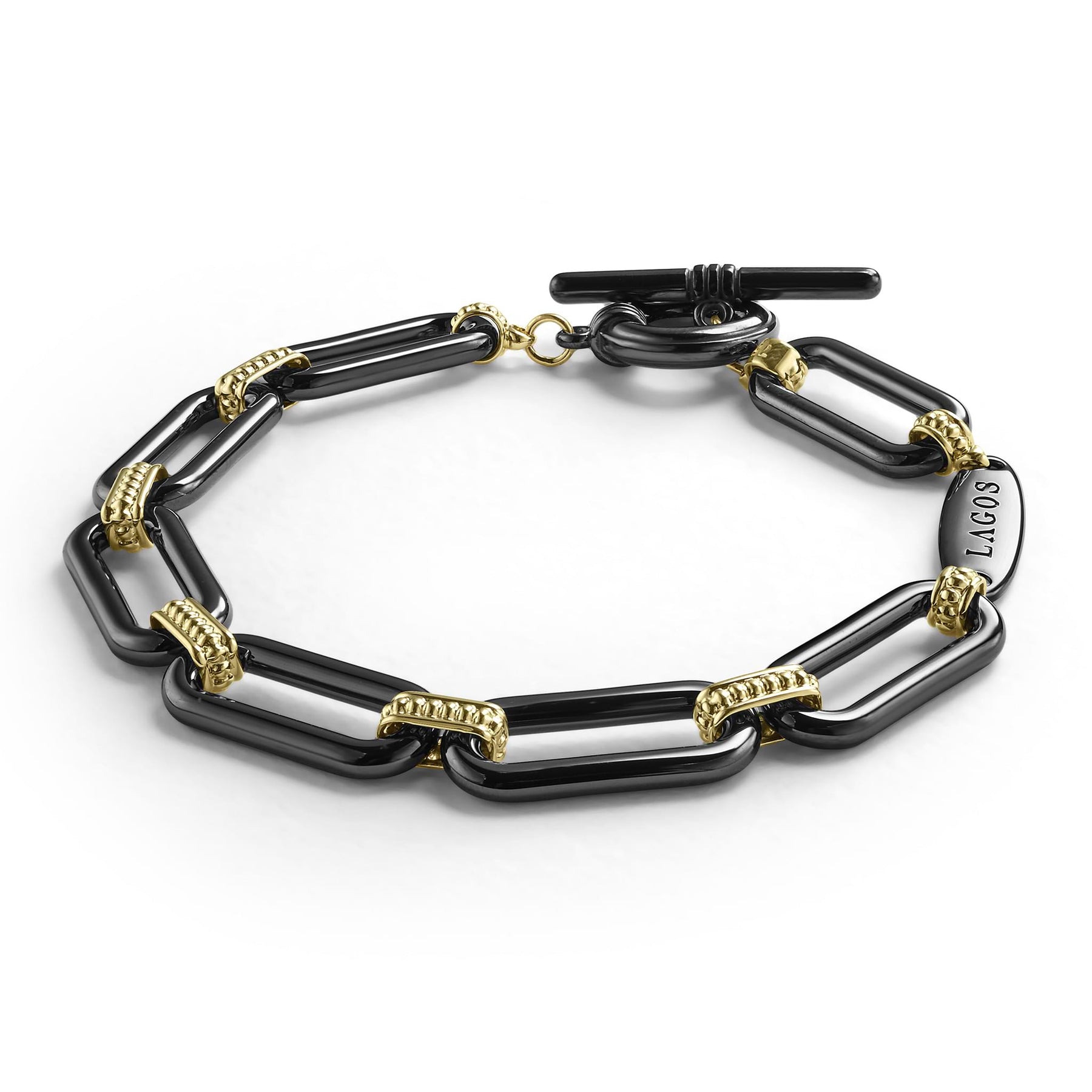 18K gold and black ceramic form this bold link bracelet.